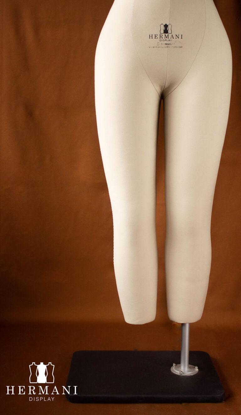 Bustos 3/4 Gabarit de Costura y Exhibición: Busto piernas 3/4 femenino para costura y diseño de prendas de vestir, tapizados o forrados en tela dril negro o beige, con o sin cintas de demarcación.