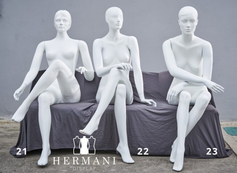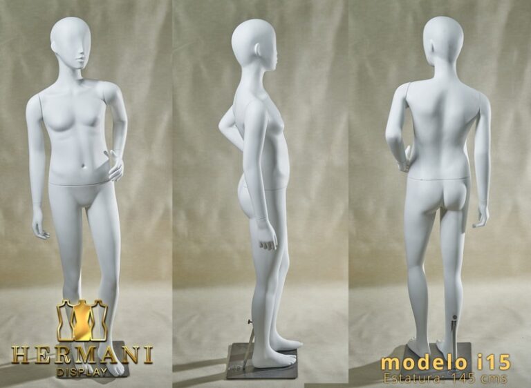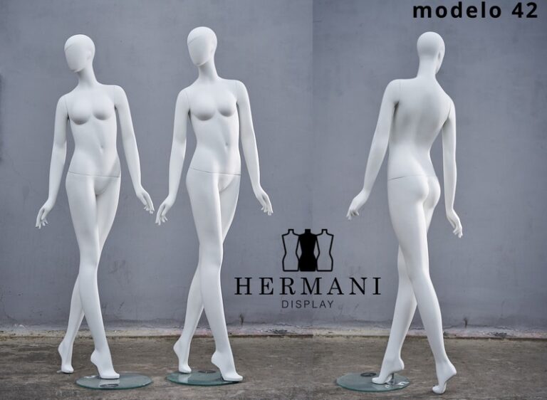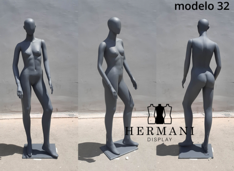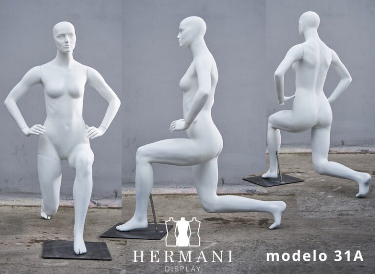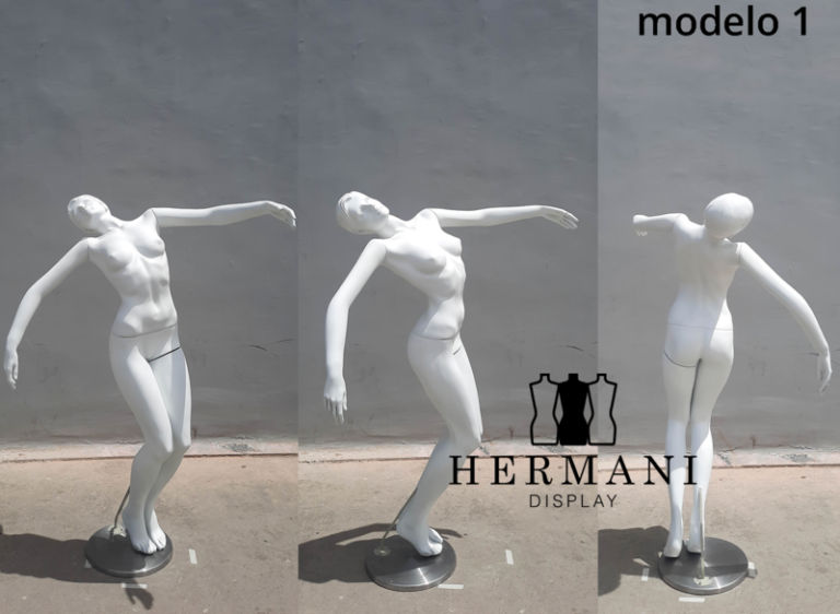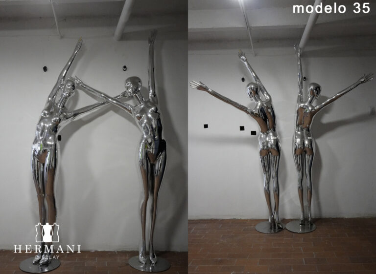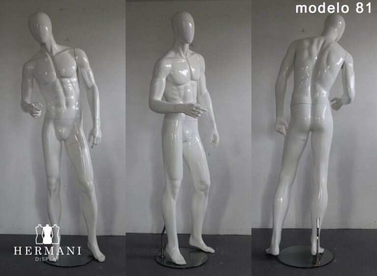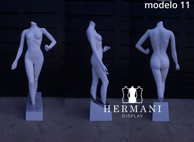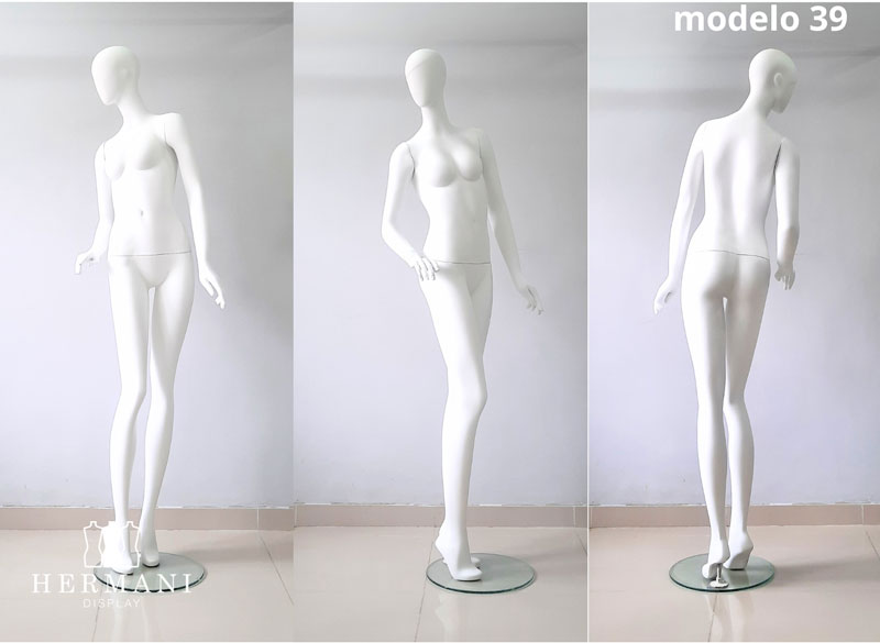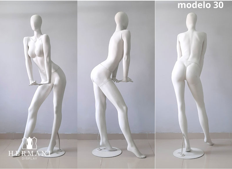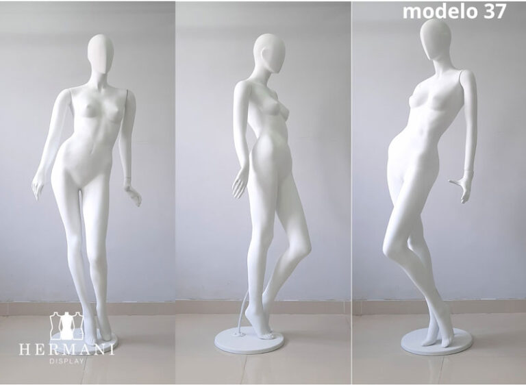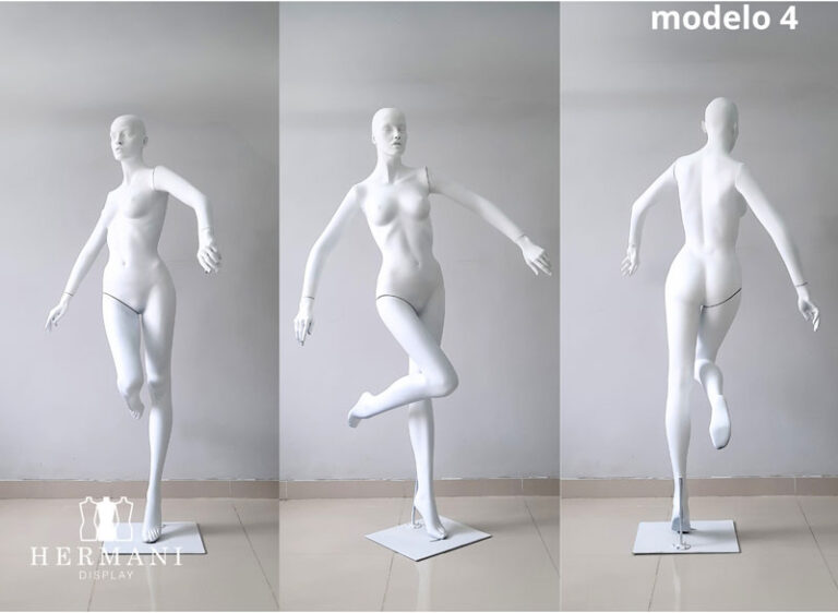 Maniquíes cuerpo entero elaborados en fibra de vidrio con diferentes poses, con o sin cabeza.