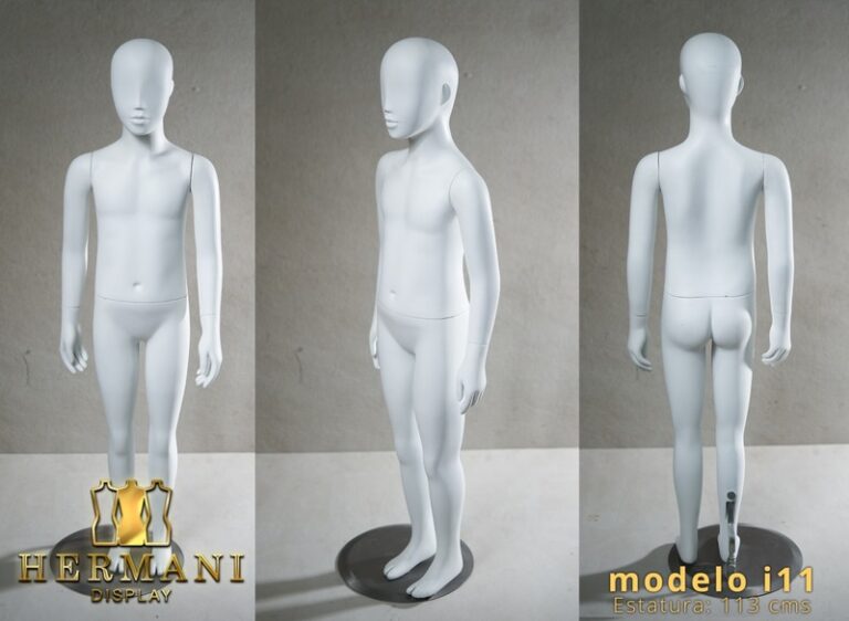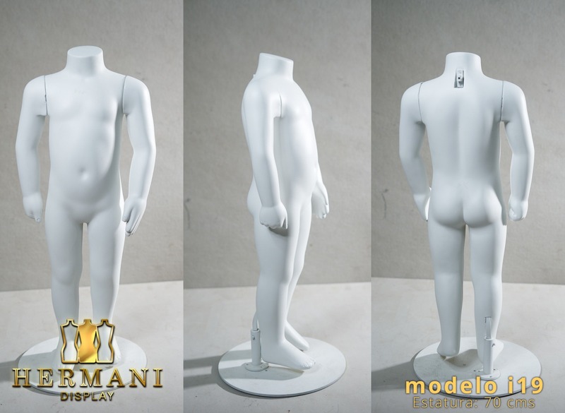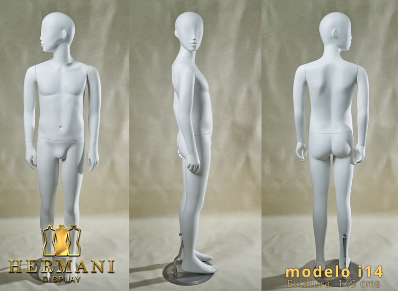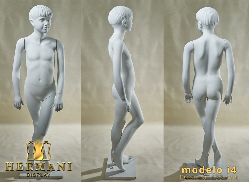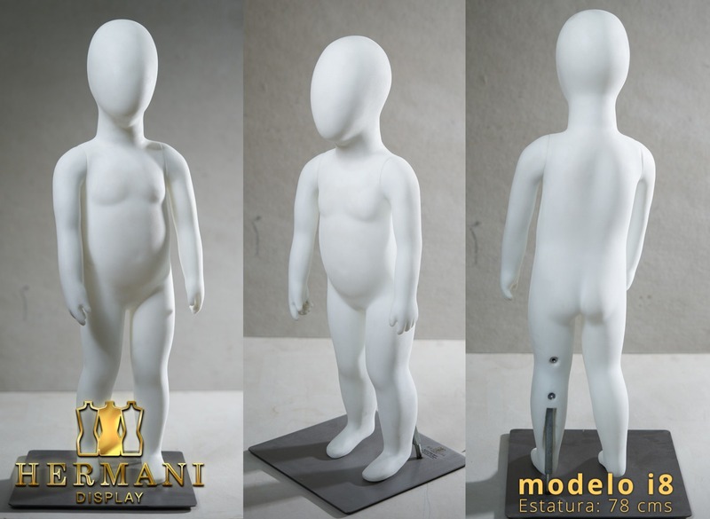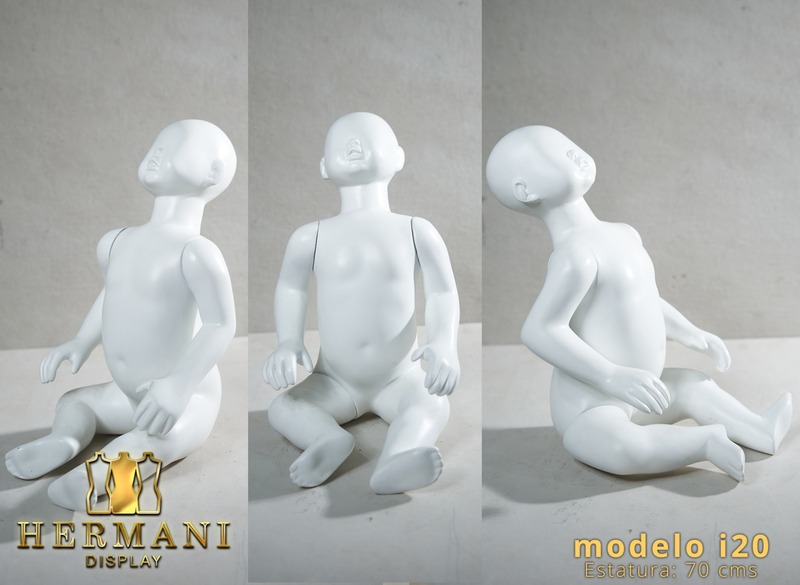 Maniquíes Infantiles cuerpo entero elaborados en fibra de vidrio con diferentes poses, con o sin cabeza.
