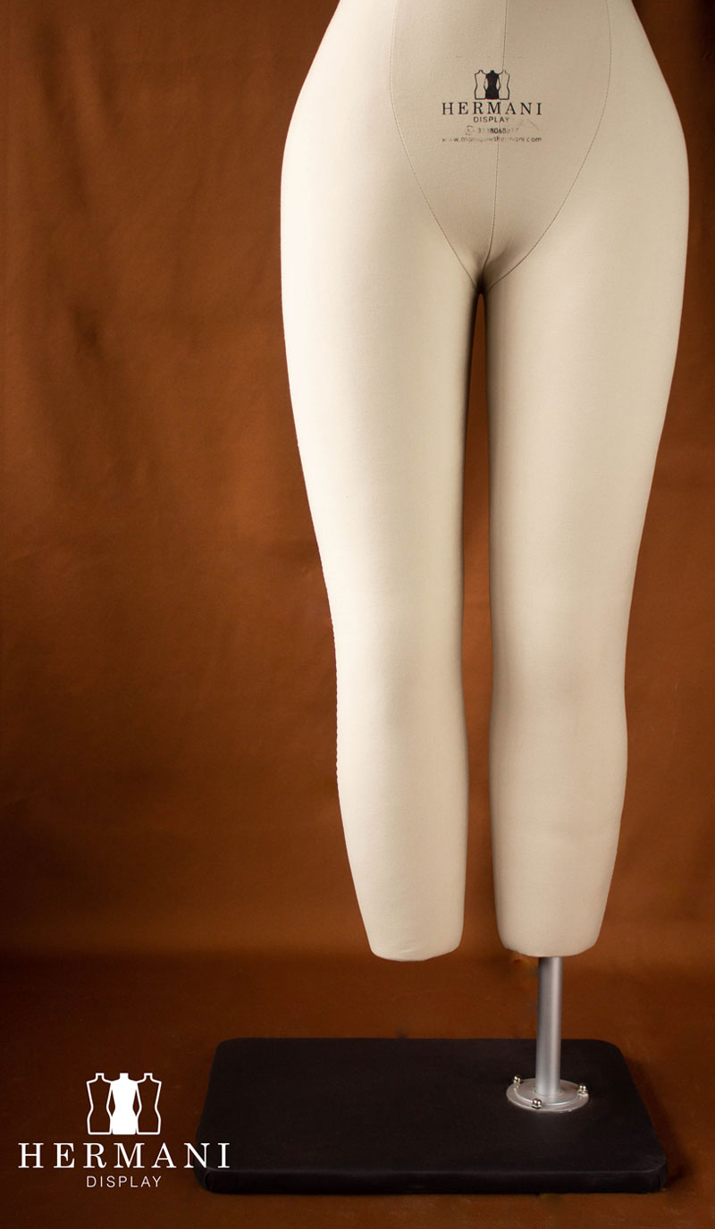 Bustos 3/4 Gabarit de Costura y Exhibición: Busto piernas 3/4 femenino para costura y diseño de prendas de vestir, tapizados o forrados en tela dril negro o beige, con o sin cintas de demarcación.